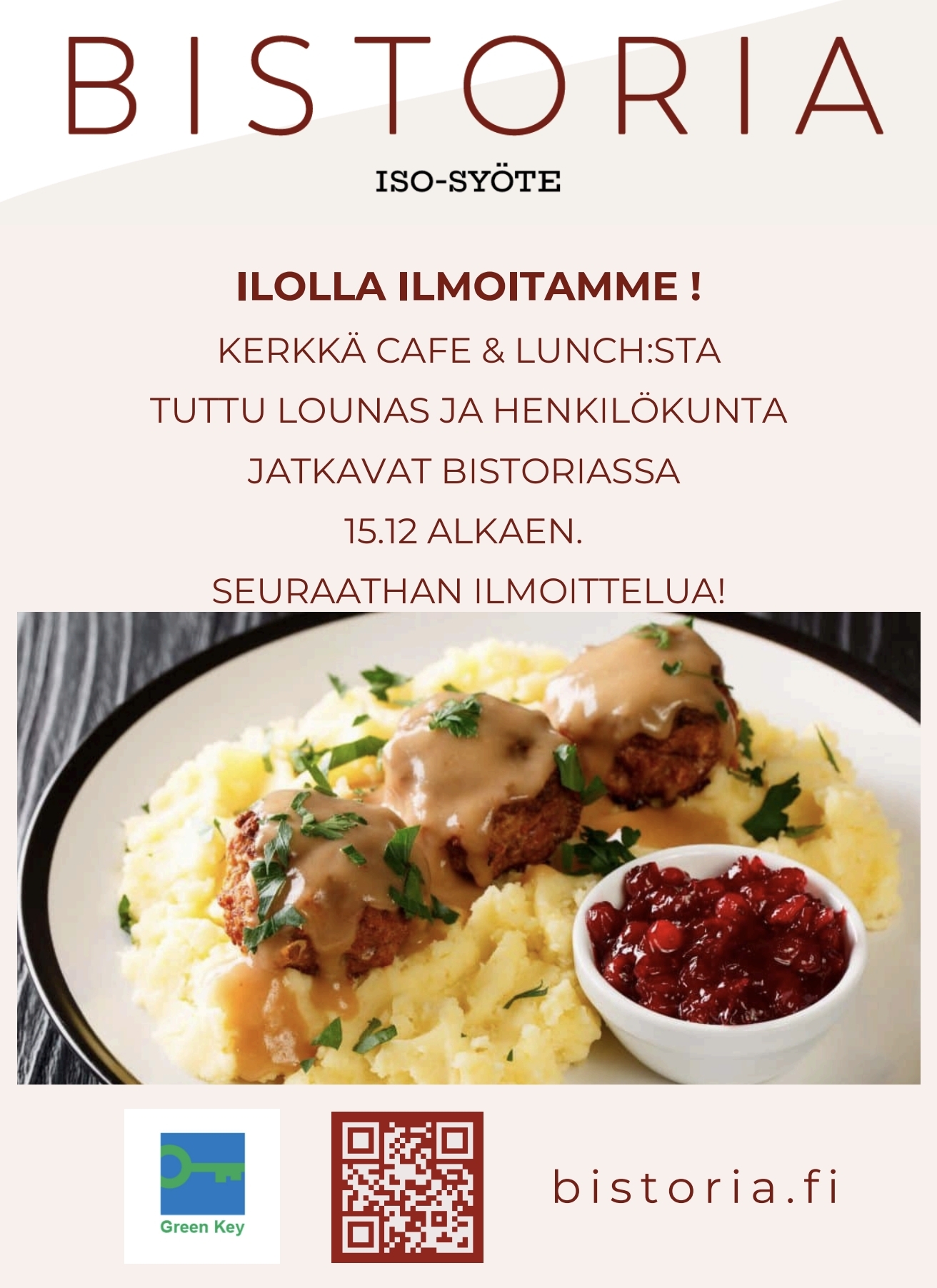 Kerkän supersuosittu lähiruokakonsepti jalkautuu Syötteen Bistoriaan ja itse tehty kotiruokalounas tarjolla jälleen 15.12. 😊
