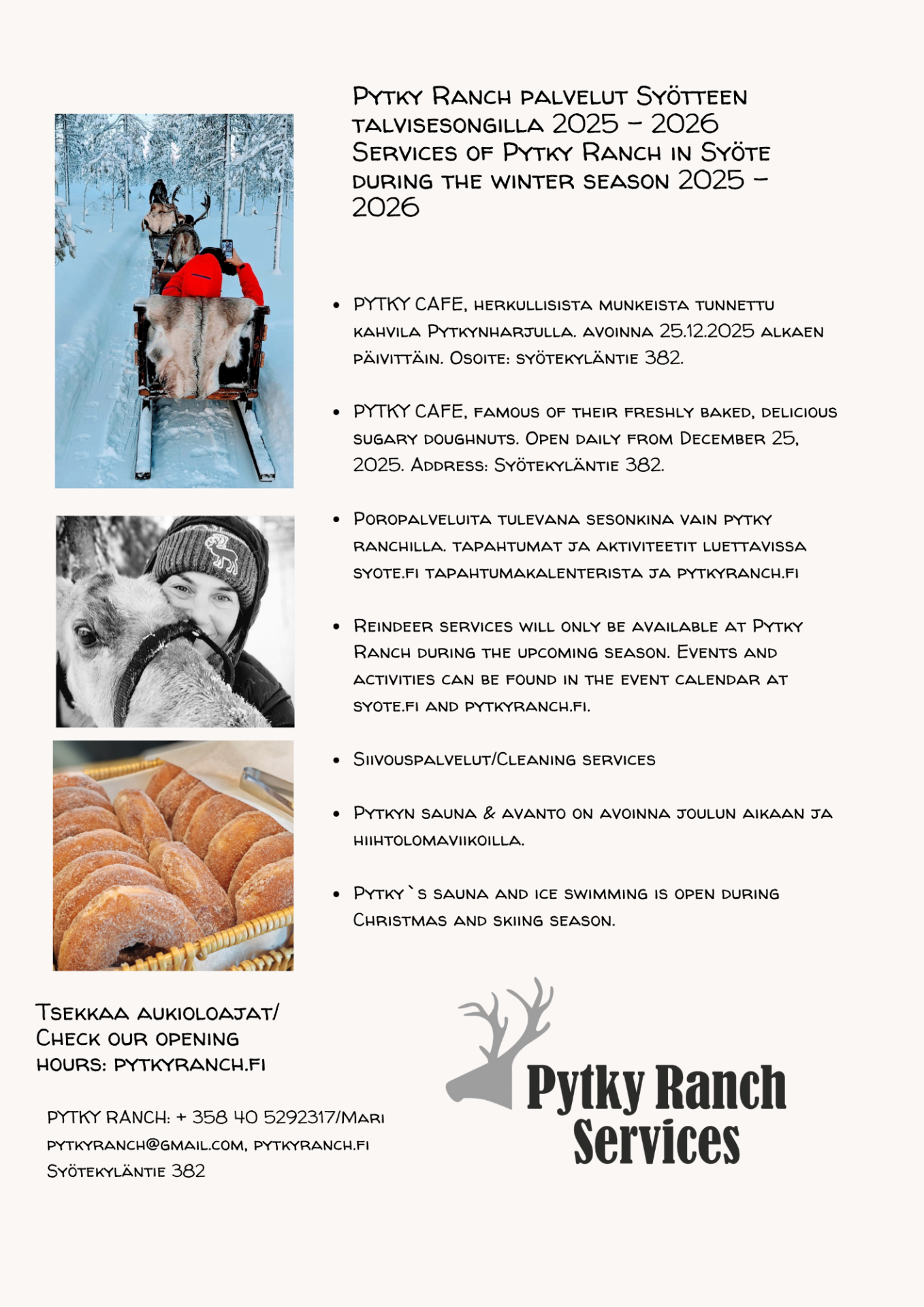 Pytky Ranch tarjoaa Syötteellä monenlaista palvelua alueen matkailijoille.joulun ja talven aikaan.
