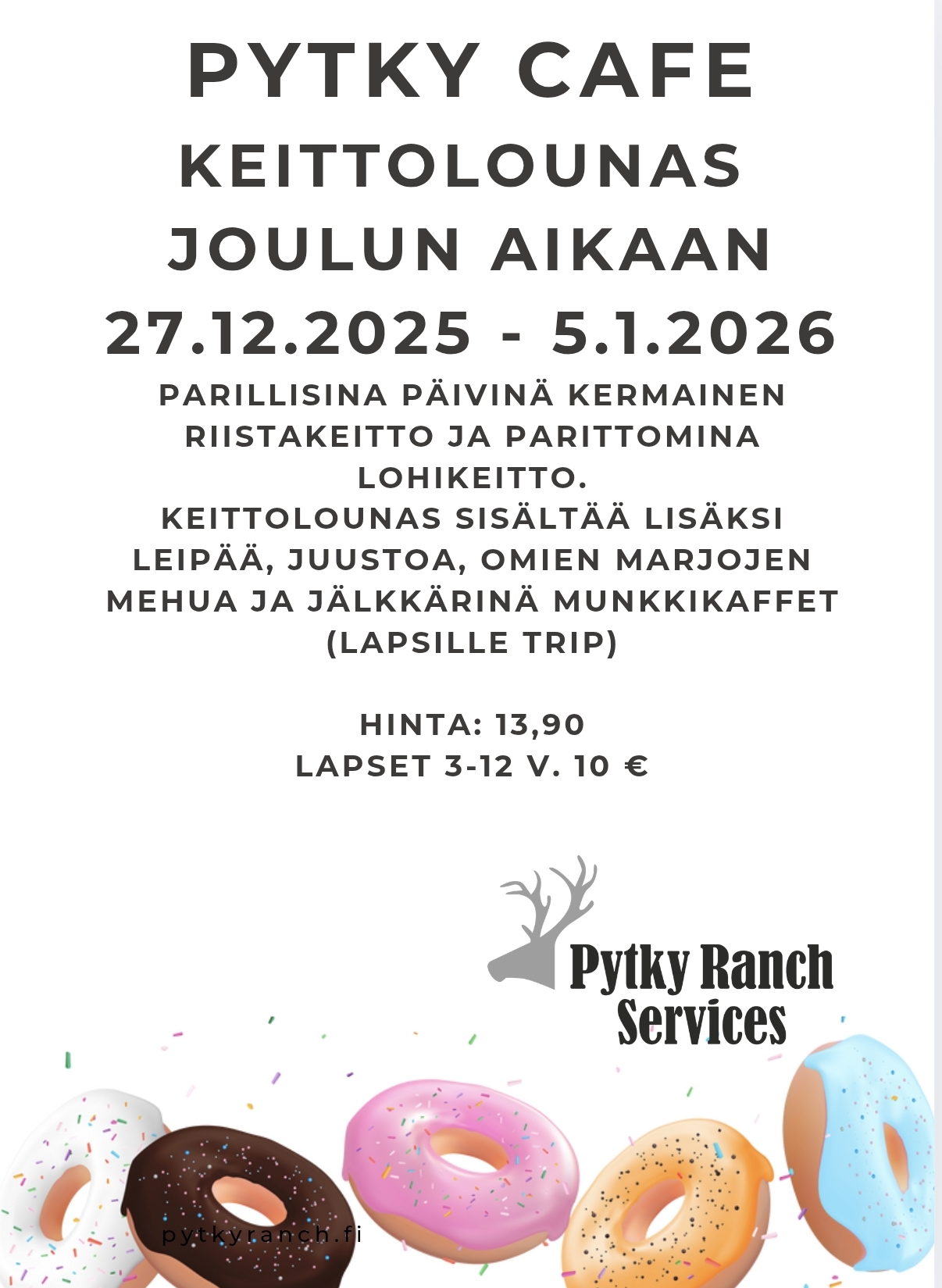 Pytky Ranch Services ei tuota enää mökkicateringia tai pitopalvelua. Näissä asioissa voi laittaa kyselyä Bistoriaan. 😊