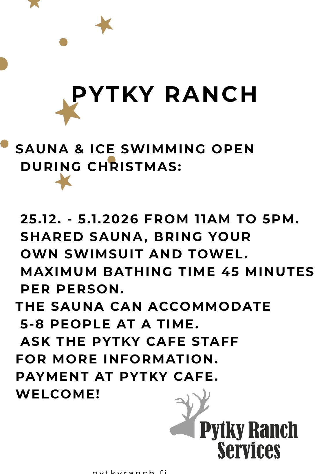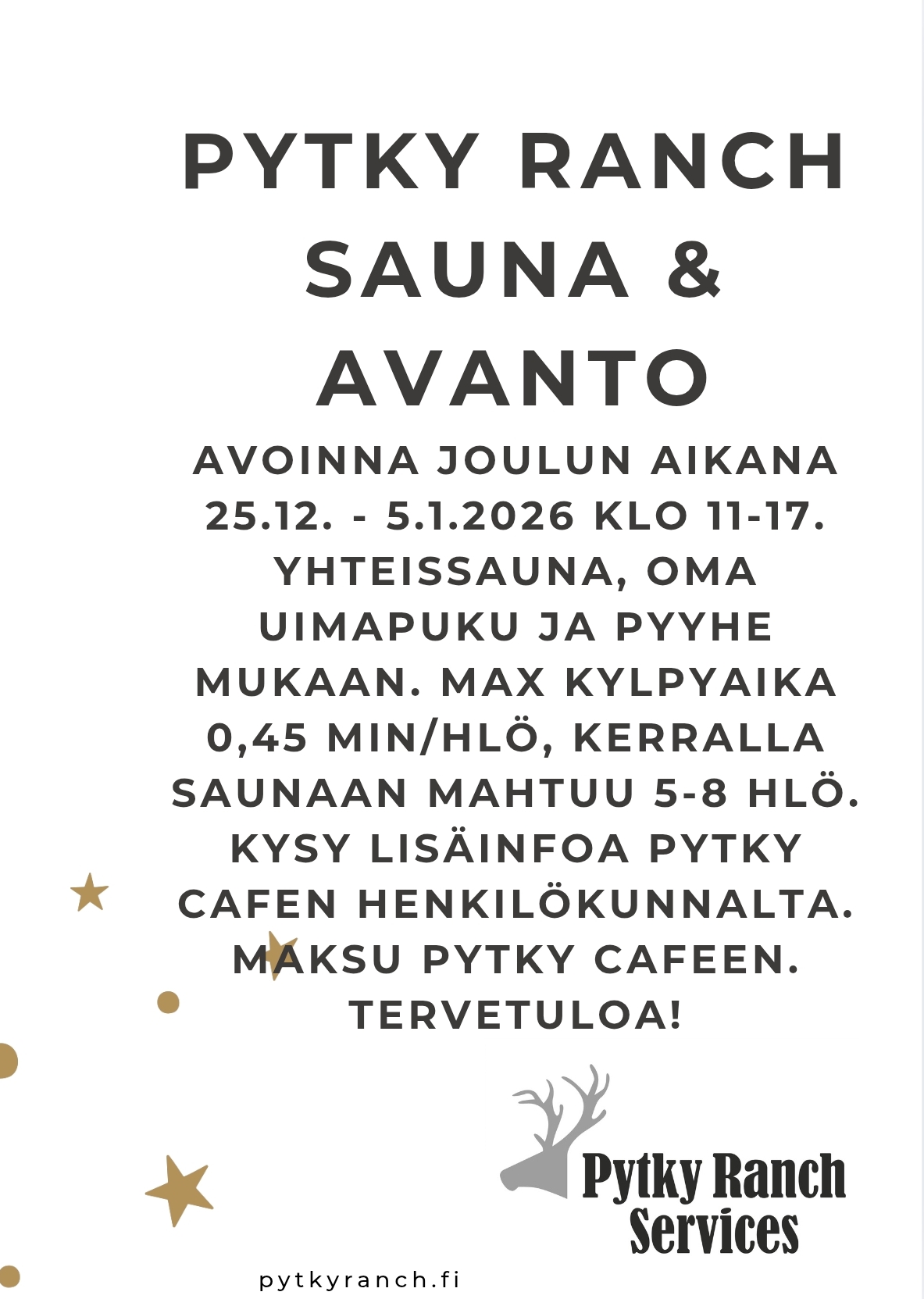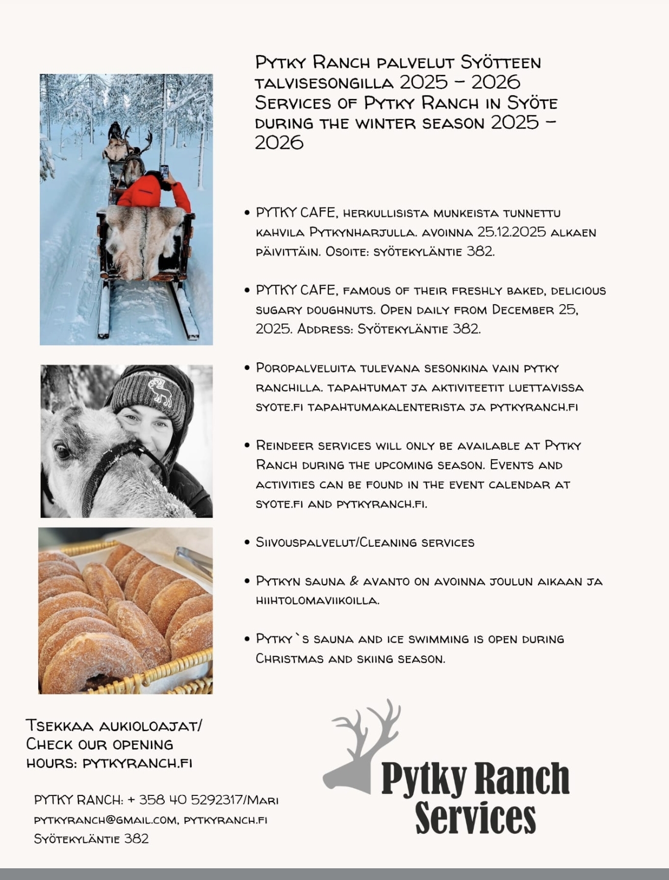 Pytky Ranch tarjoaa Syötteellä monenlaista palvelua alueen matkailijoille.joulun ja talven aikaan.