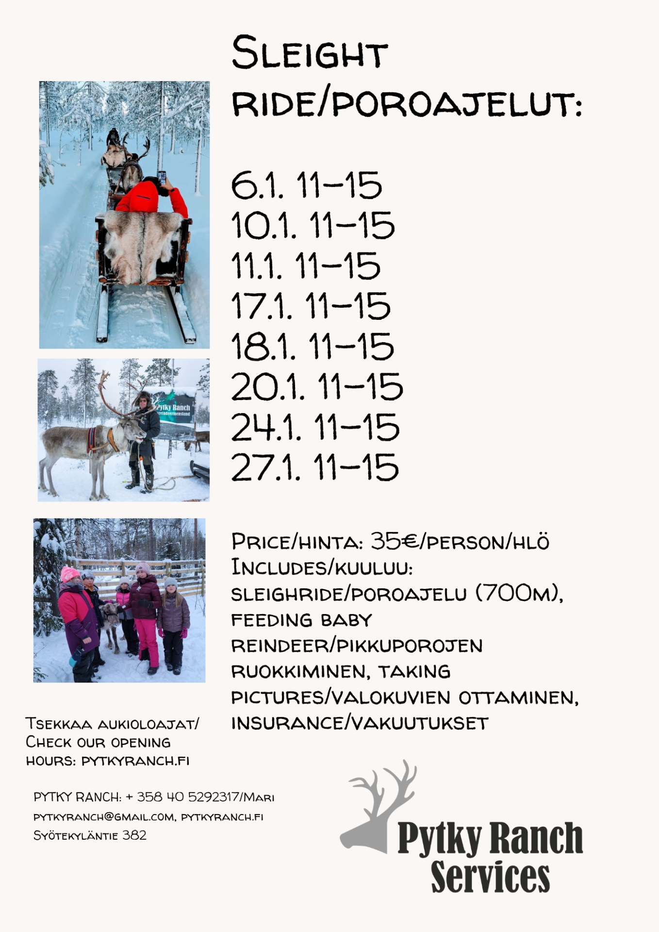 Lämpimästi tervetuloa tutustumaan Pytky Ranch:n supersöpöihin poroihin!